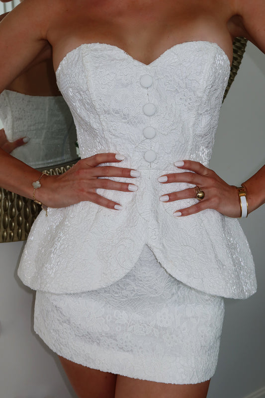 A tailored classic reimagined. The Tiffany Set is the definition of soft structure. Featuring sculpted bustier top with corset detailing and wide-leg pants in the best hand selected fabrics. Designed to move with you while making and entrance.